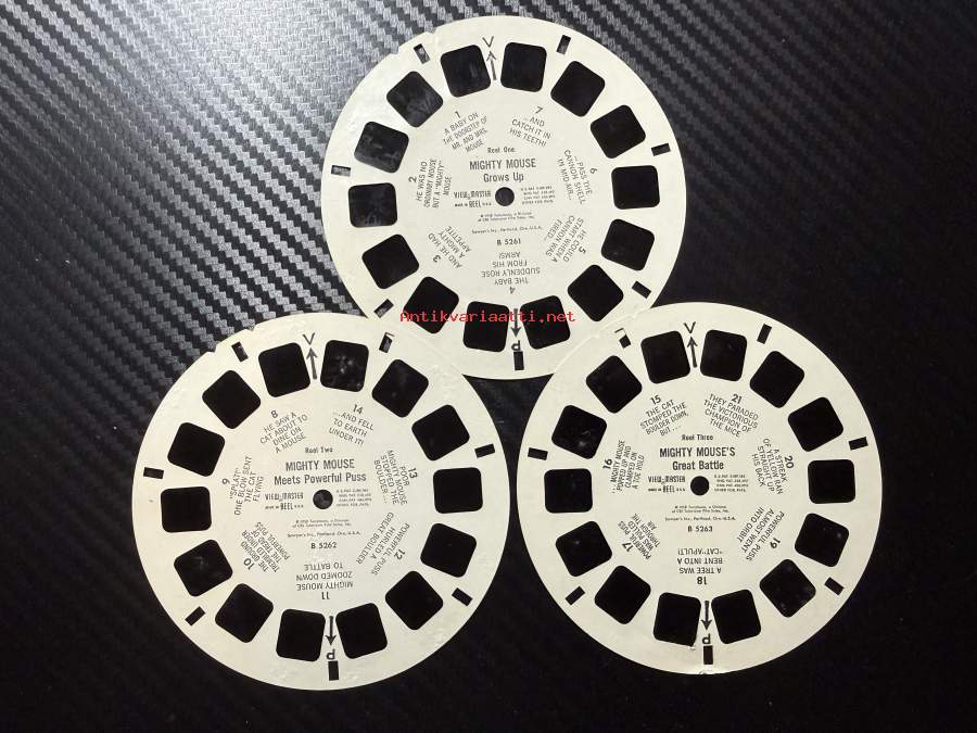 View-Master – Mighty Mouse: Grows Up / Meets Powerful Puss / Great Battle – B5261 / B5262 / B5263 – reel / kuvakiekko
