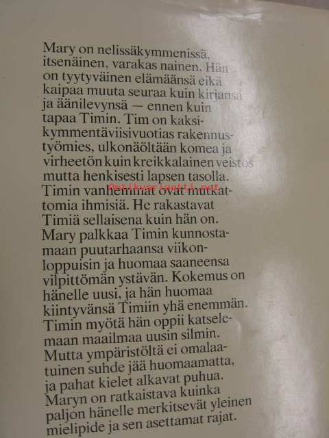 | Saatavilla | 1 kpl | | Julkaisuvuosi | 1979 | | Sivuja | 276 | | Kunto | K3 | | hyvä, ei ed. om nimeä | | Sidonta/painoasu | Sidottu (kansipaperit) | | ISBN | 951-643-855-5 | | Kielet | Suomi |