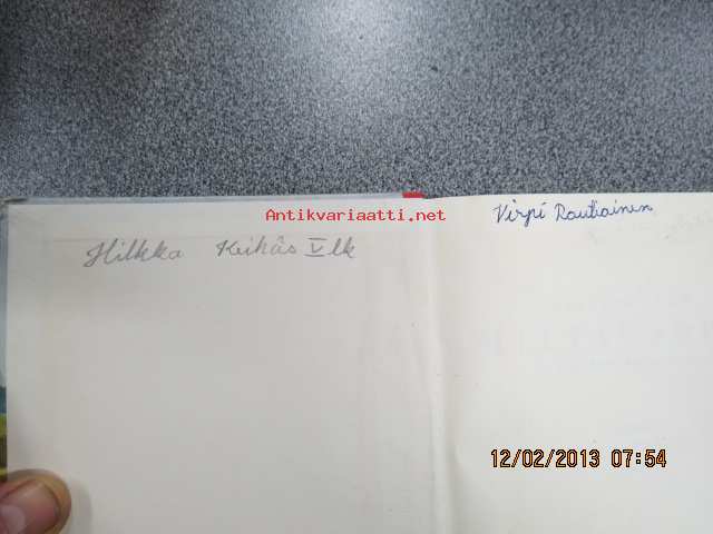 | Saatavilla | 1 kpl | | Julkaisuvuosi | 1958 | | Sivuja | 80 | | Painos | 40. | | Kunto | K3 | | Sidonta/painoasu | Kuvitettu kovakantinen | | Kielet | Suomi |