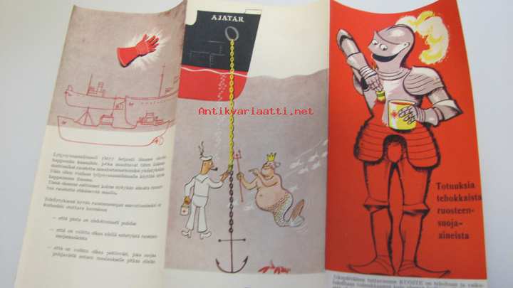 | Saatavilla | 1 kpl | | Julkaisuvuosi | 19?? | | Sivuja | 6 | | Kunto | K4 | | Sidonta/painoasu | Pienpainate | | Kielet | Suomi |