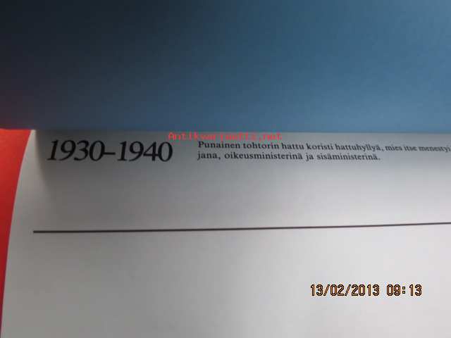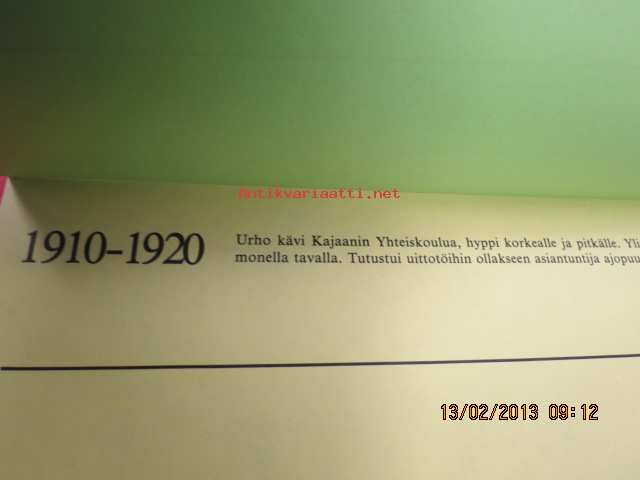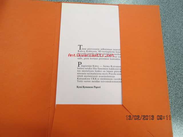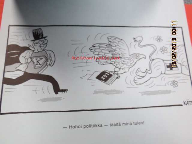 | Saatavilla | 1 kpl | | Sivuja | 9 | | Kunto | K3 | | Sidonta/painoasu | Pienpainate | | Kielet | Suomi |