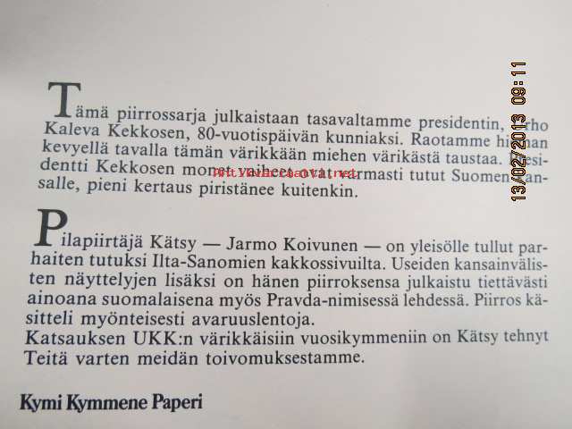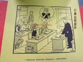 UKK:n värikkäät vuosikymmenet - Kymi Kymmene Paperin julkaisema pilapiirtäjä Kätsyn piirroskokoelma presidentti Kekkosen 80-vuotispäivän kunniaksi