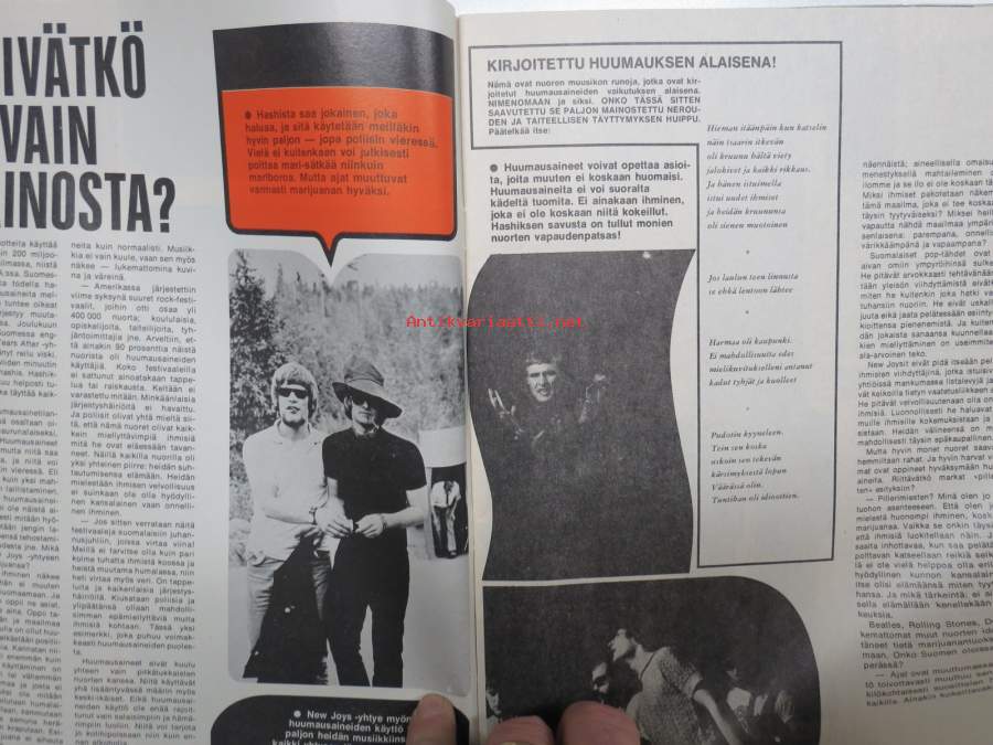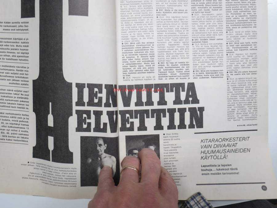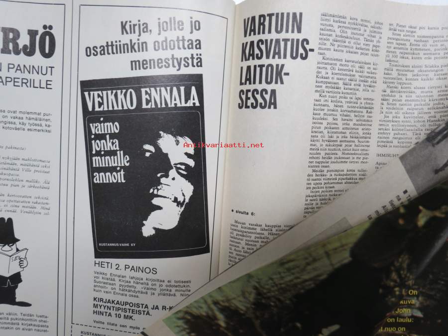 Marijuana kauppoihin?, Narkomaanit, Simon hylkeenmetsästäjät, Rautavaaran epäinhimilliset koulut, Pakkokastraatiot Suomessa, Kissanpoltto, Huonon naisen päiväkirja - Aila Kohtakangas, Mad Mongol - Anssi Pethman, Uusi Ford Escort, ym.