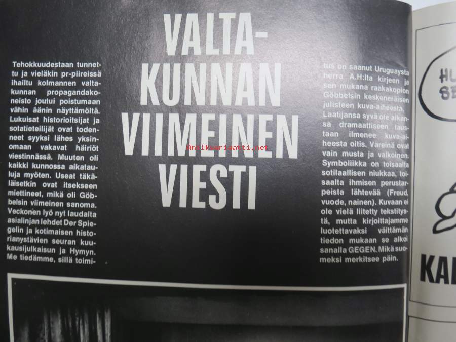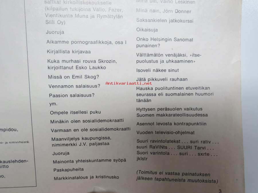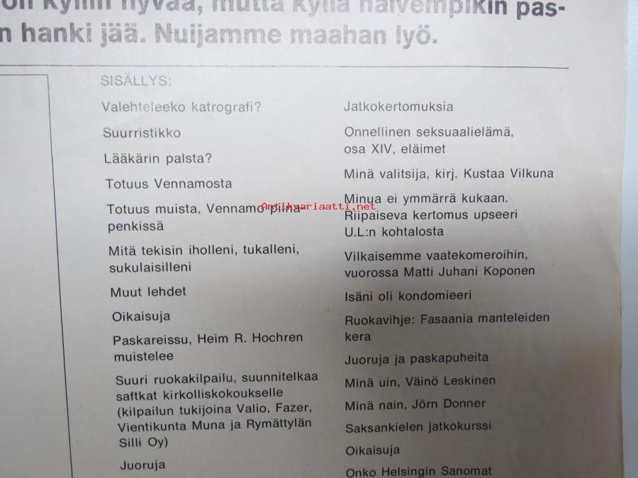 | Saatavilla | 1 kpl | | Julkaisuvuosi | 1970 | | Sivuja | 50 | | Kunto | K2 | | Sidonta/painoasu | Lehti | | Kielet | Suomi |