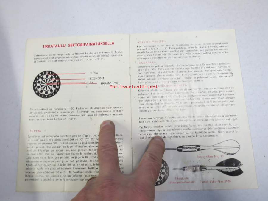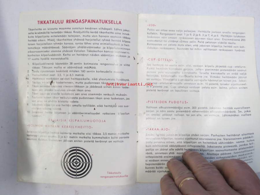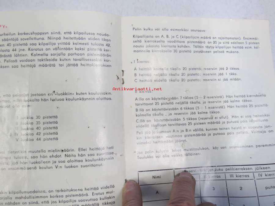 | Saatavilla | 1 kpl | | Julkaisuvuosi | 196? | | Sivuja | 8 | | Kunto | K2 | | Kulunut, vikoja | | Sidonta/painoasu | Pienpainate | | Kielet | Suomi |