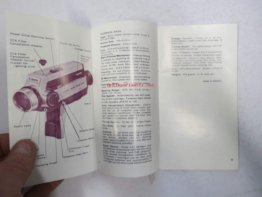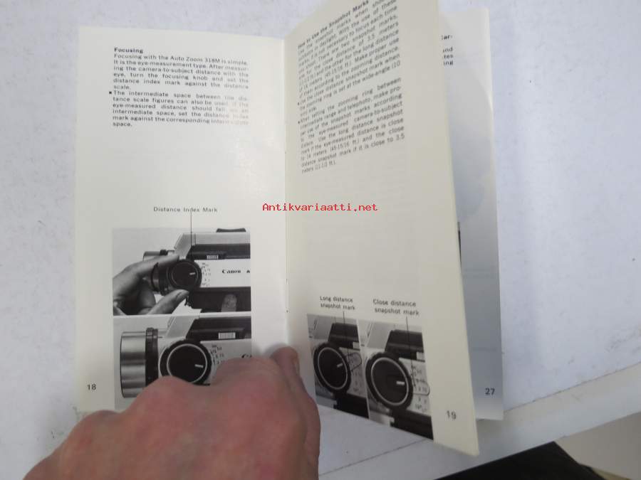 Canon Auto Zoom 318M kaitafilmikamera "Instructions" -käyttöohje englanniksi