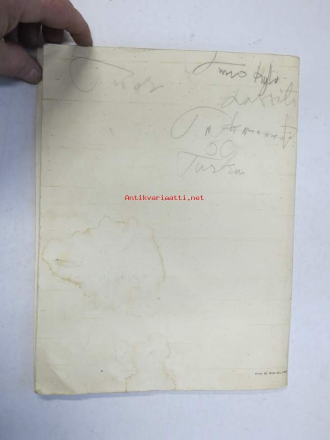 | Saatavilla | 1 kpl | | Julkaisuvuosi | 1955 | | Sivuja | 51 | | Painos | 1. | | Kunto | K2 | | Käytetty, kansissa kulumaa ja tahroja. | | Sidonta/painoasu | Nidottu (pehmeäk.) | | Kielet | Suomi |