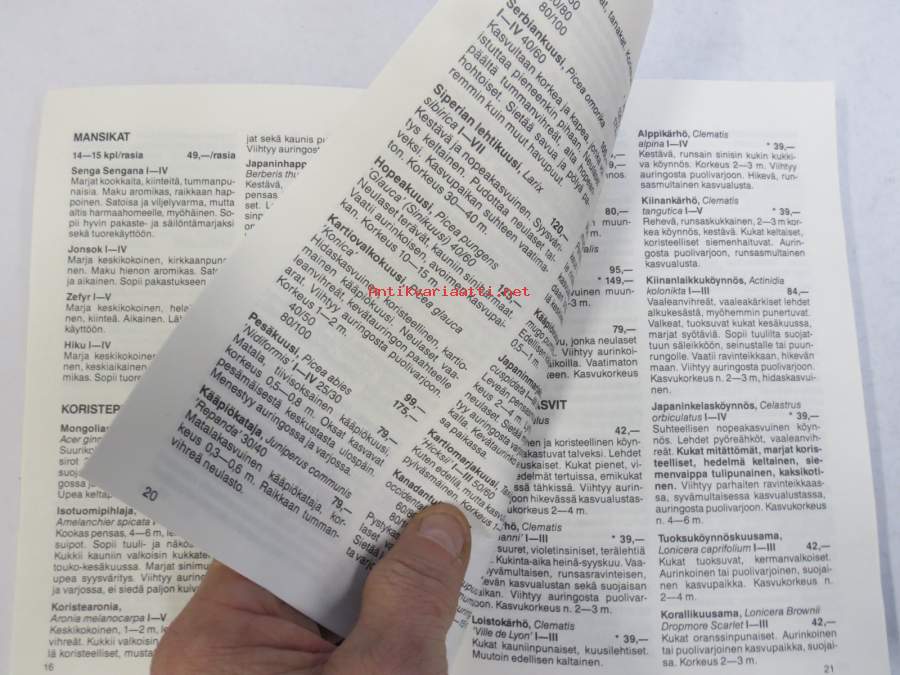 Renlund Kivapiha Taimihinnasto - Puutarha EKA -hinnasto kevät 1990