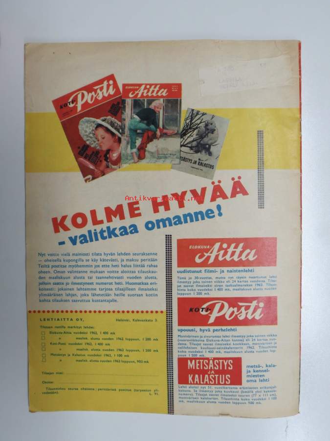 Elokuva-Aitta 1962 nr 4, Kansikuva Elina Salo, Filmikamera Afrikassa, Kauneudenhoitoa koulutunneilla, Ann-Margret, Art Blakey Helsingissä, George Nader, El Cid, ym.