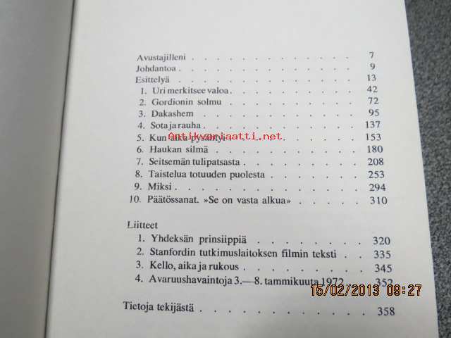 | Saatavilla | 1 kpl | | Julkaisuvuosi | 1974 | | Sivuja | 360 | | Painos | 1. | | Kunto | K3 | | Sidonta/painoasu | Sidottu (kansipaperit) | | ISBN | 951-0-06375-4 | | Kielet | Suomi |
