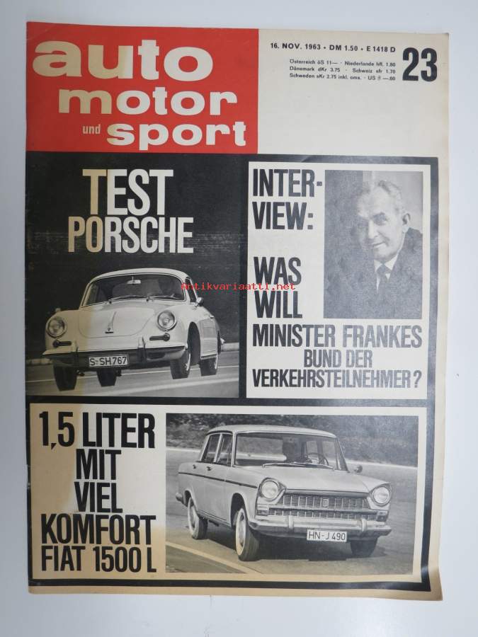 Auto motor und sport 1963 nr 23, Fiat 1500 L, Test Porsche 356C + SC, Die Briten in kommen, Triumph 2000, ym.