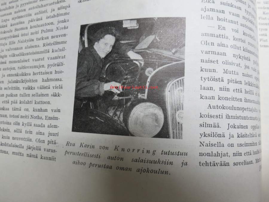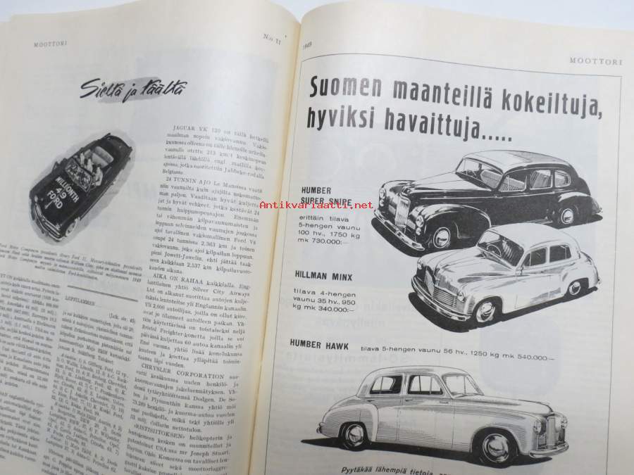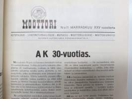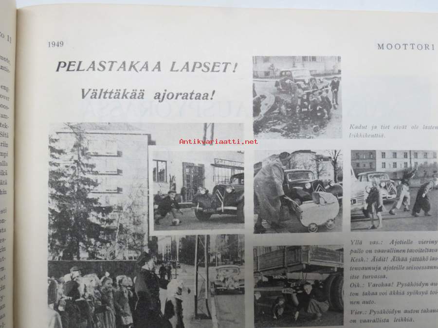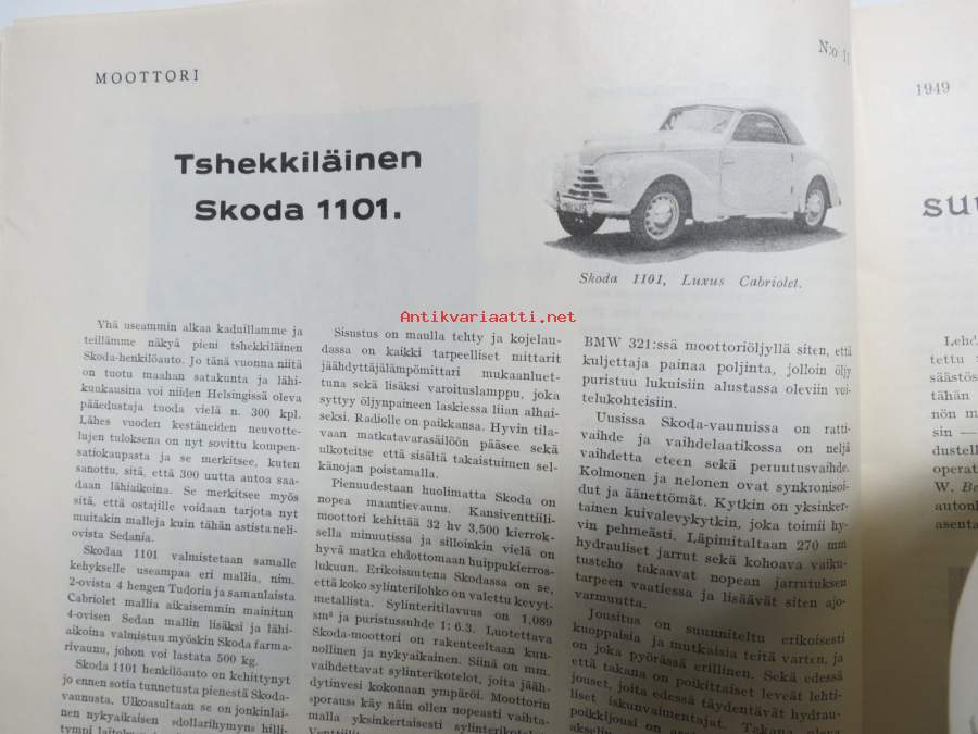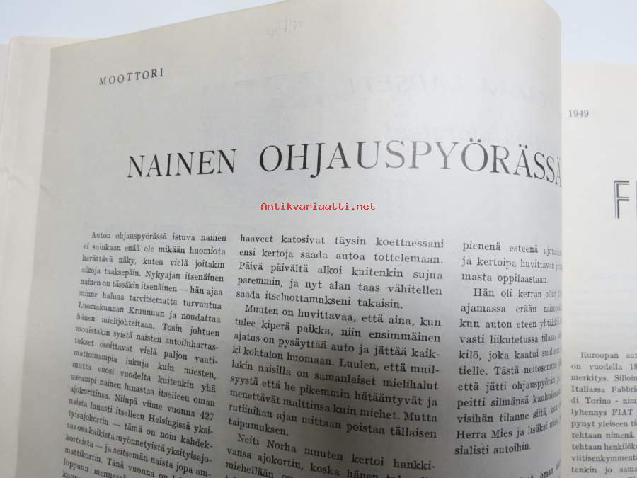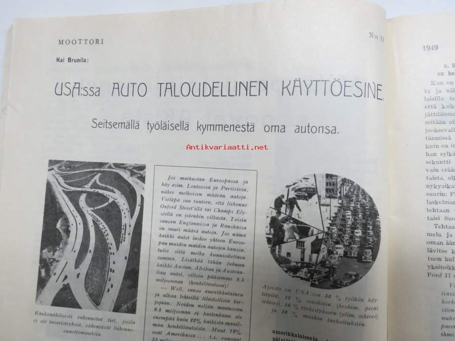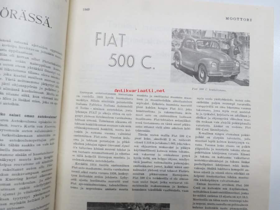 Moottori 1949 nr 11, AK 30-vuotias, Fiat 500 C, Auto USA:ssa, Nainen ohjauspyörässä, Turussa maamme ensimmäinen Speedway-rata, takakansi Evert Saloranta (Ford V8)