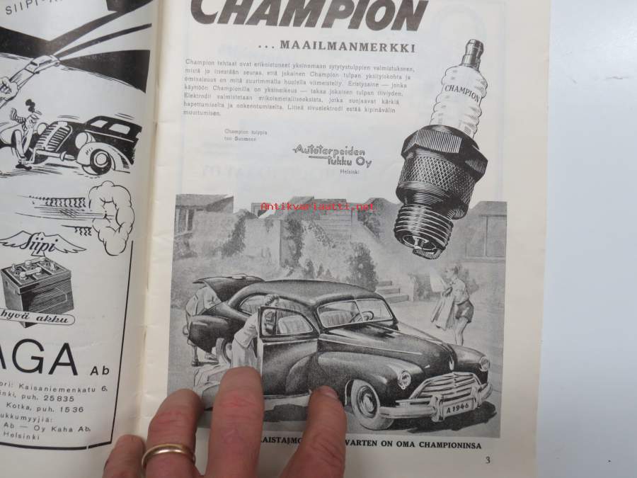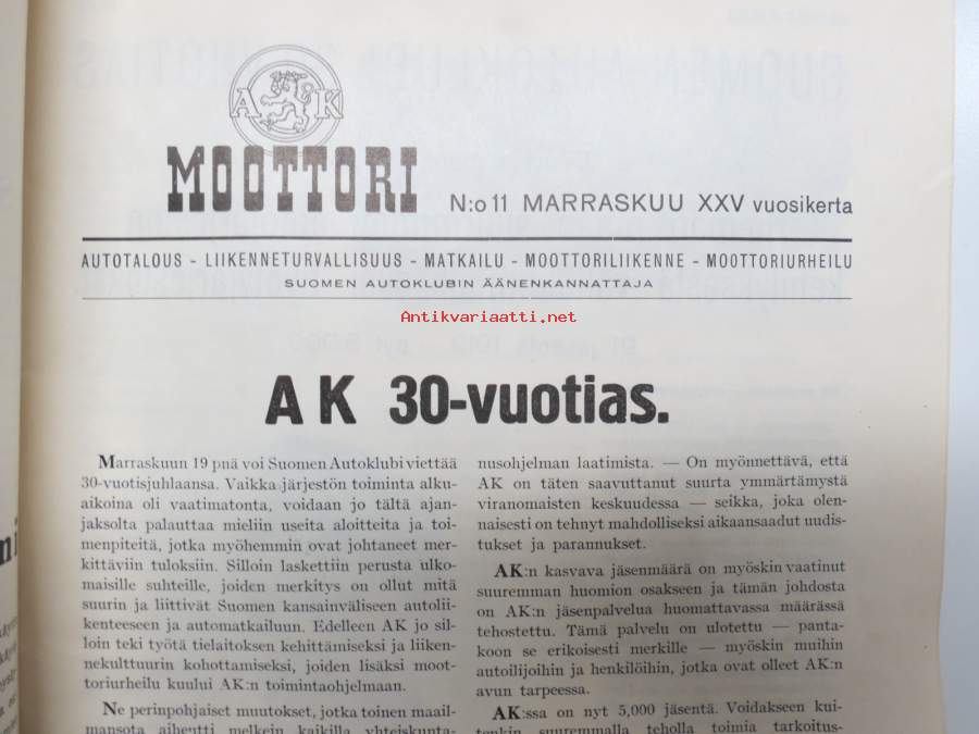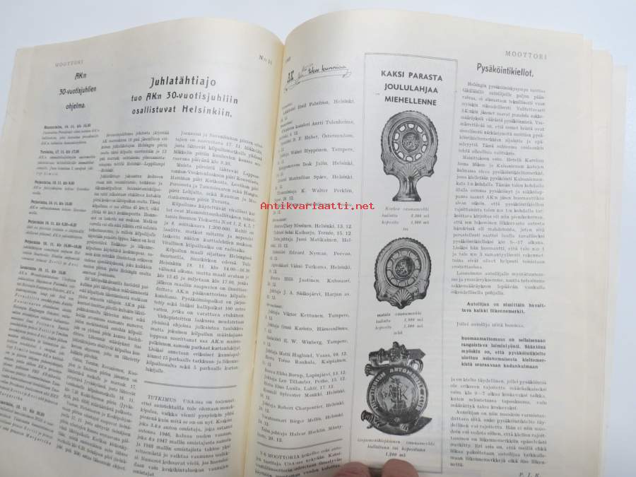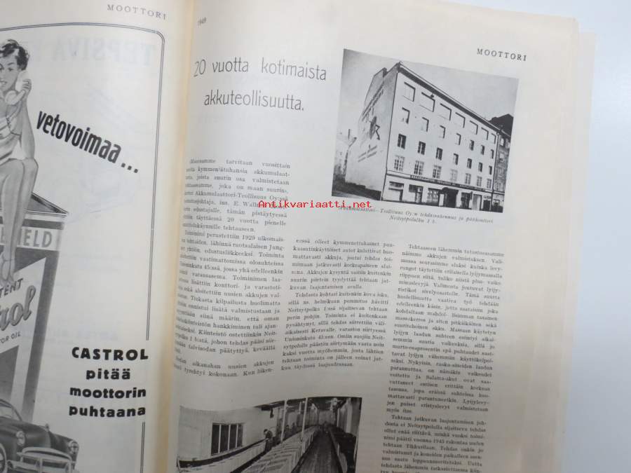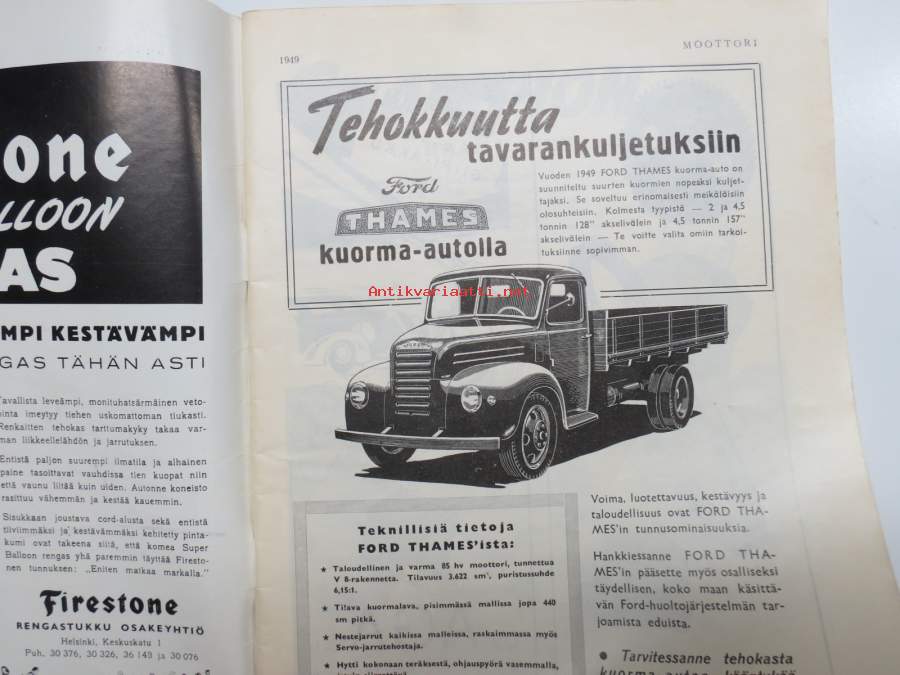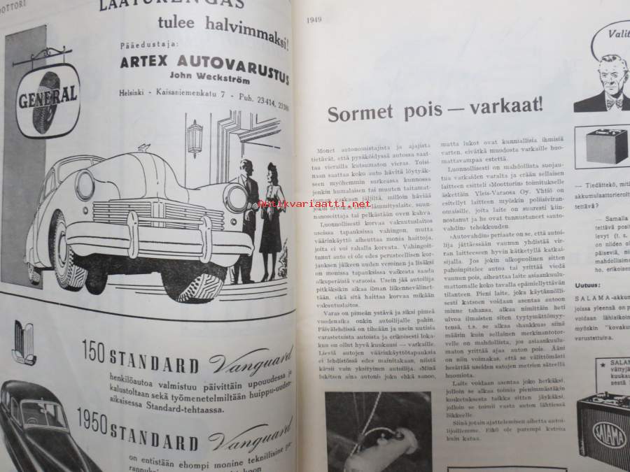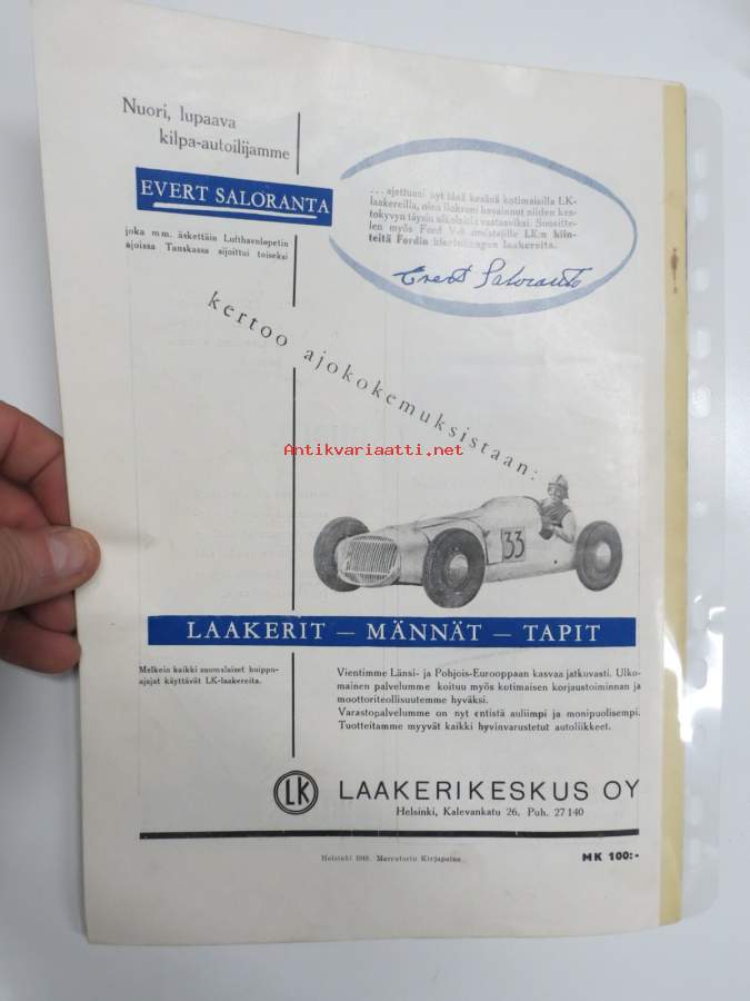 Moottori 1949 nr 11, AK 30-vuotias, Fiat 500 C, Auto USA:ssa, Nainen ohjauspyörässä, Turussa maamme ensimmäinen Speedway-rata, takakansi Evert Saloranta (Ford V8)