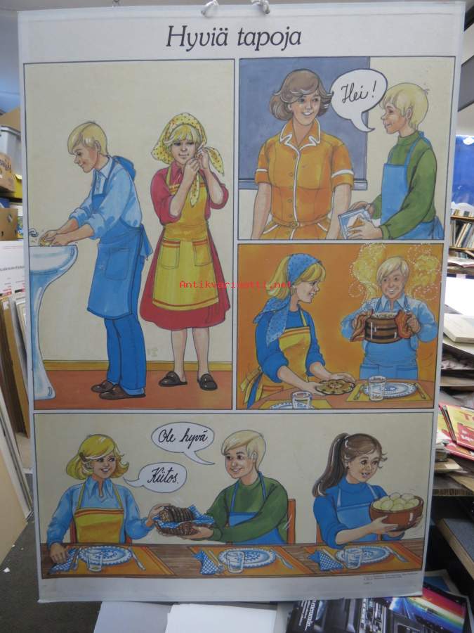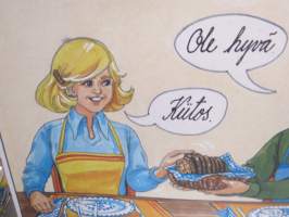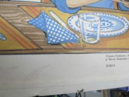 | Saatavilla | 1 kpl | | Julkaisuvuosi | 1983 | | Sivuja | 2 | | Kunto | K2 | | Yhteen hahmoon piirretty pisamia ym. jälkikäteen | | Sidonta/painoasu | Juliste | | Kielet | Suomi |