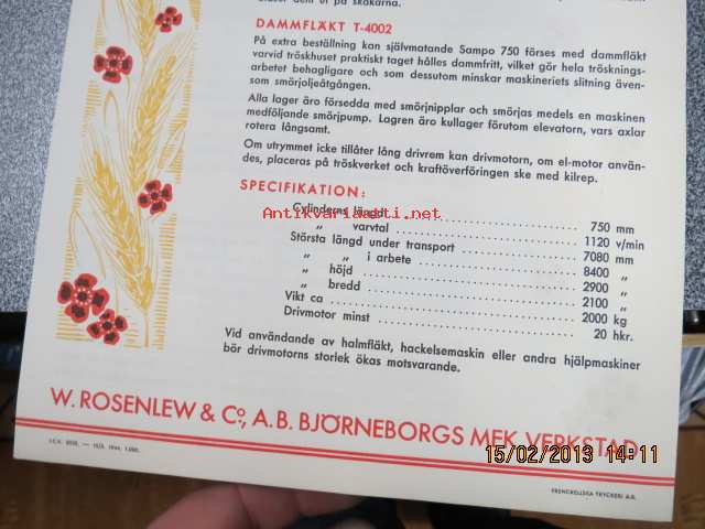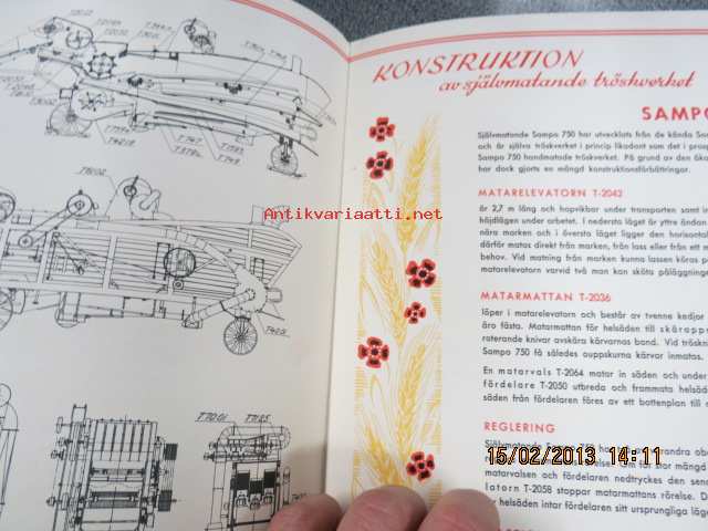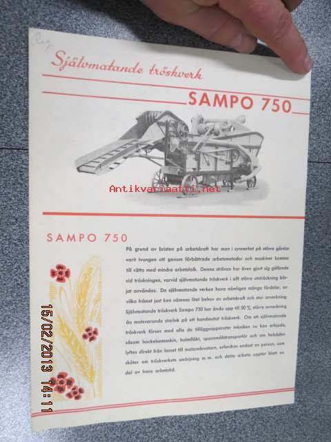 Sampo 750 självmatande tröskverk 1944 -brsochyr på svenska