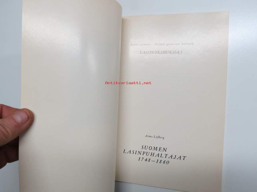 Lasitutkimuksia I - Suomen lasinpuhaltajat 1748-1860 (kansikuvan sommittelu Tapio Wirkkala)