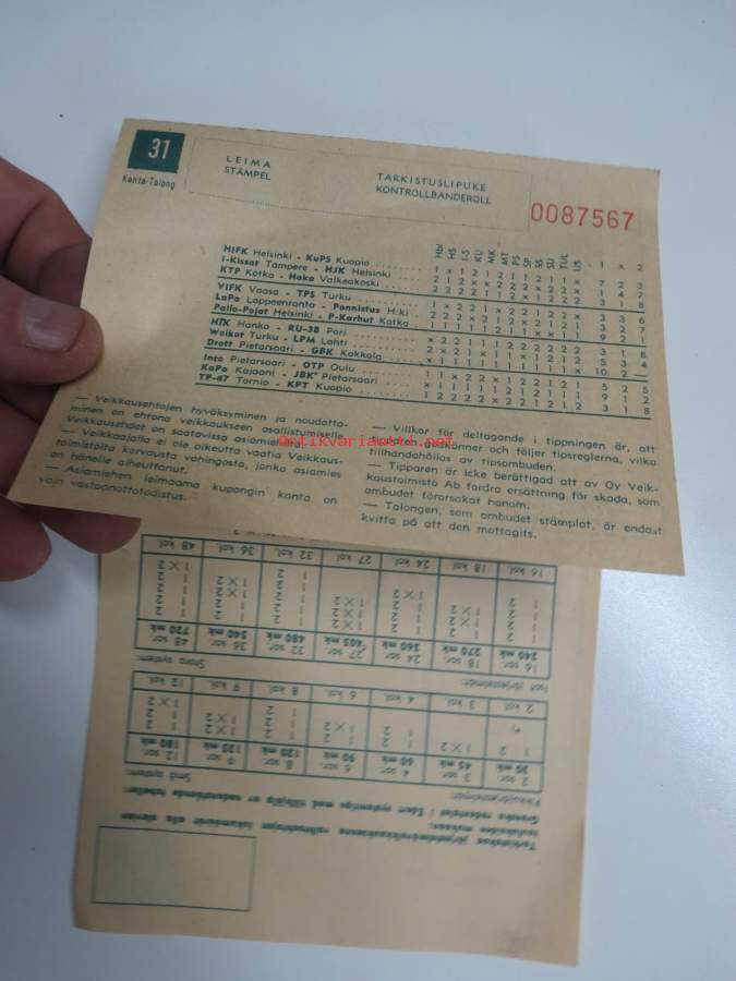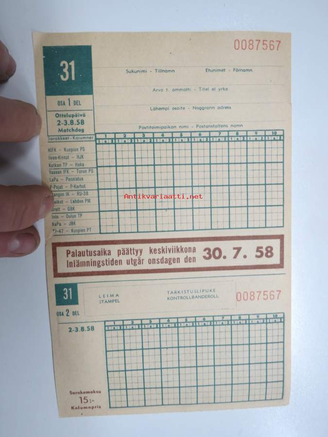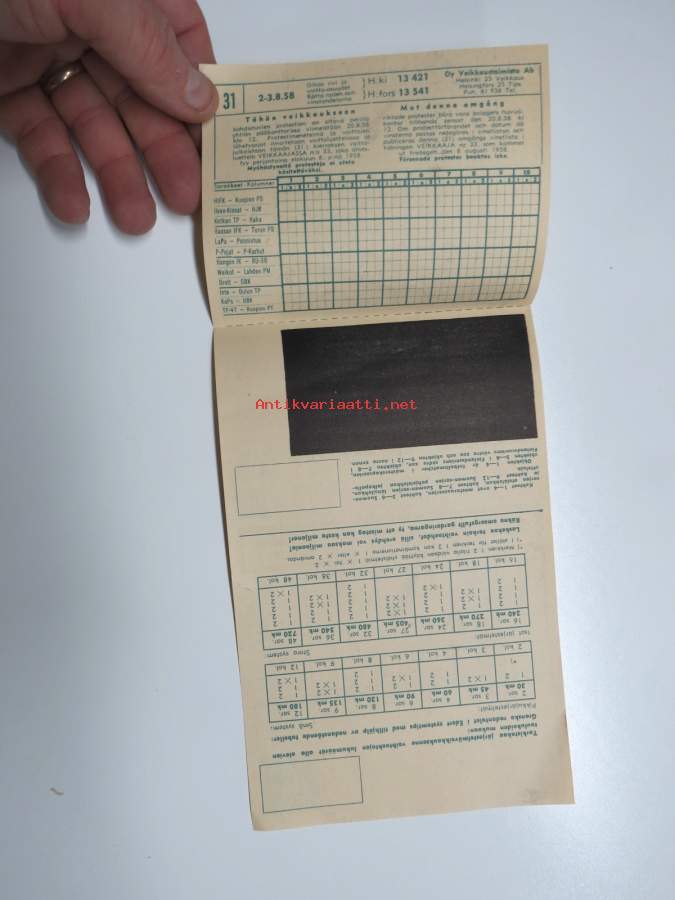 Veikkauskuponki - Vakioveikkaus - Stryktips 2-3.8.1958, nr 0087567
