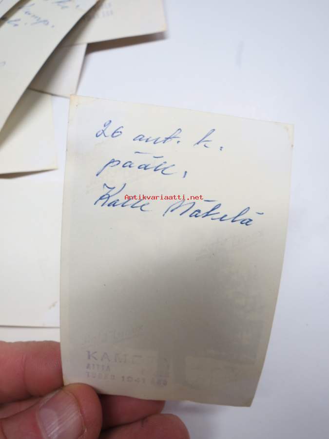 | Saatavilla | 1 kpl | | Kunto | K3 | | Sidonta/painoasu | Valokuva |