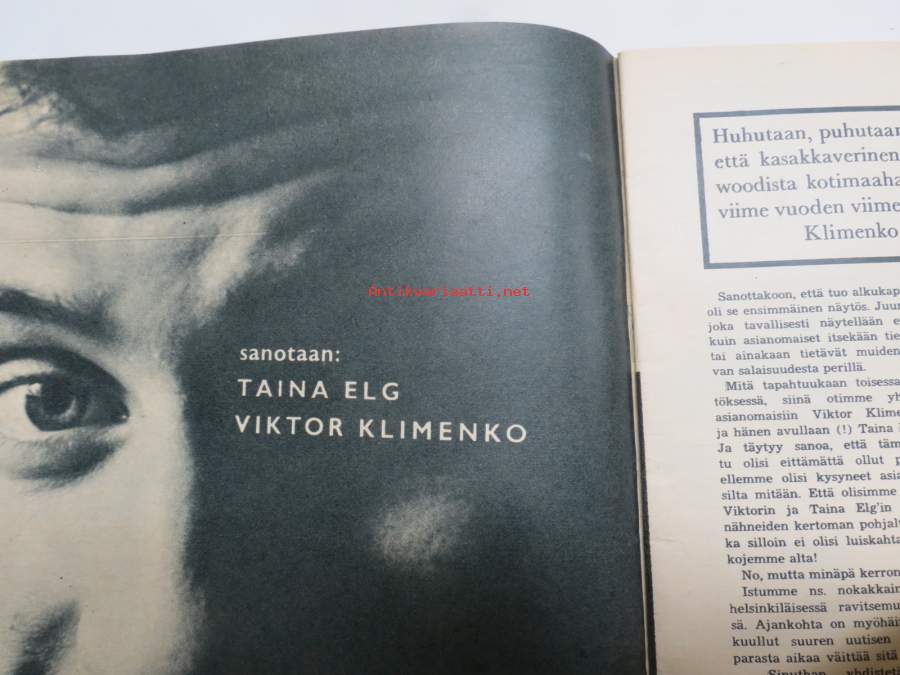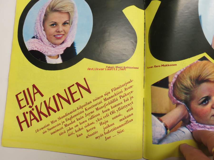 Hymy 1960 nr 1, Kansikuva Miss Skandinavia Eija Häkkinen, Kuherruskuukausi kunnalliskodissa, Taina Elg - Viktor Klimenko, Totuus Kouvolan puhelintyttöverkostosta...