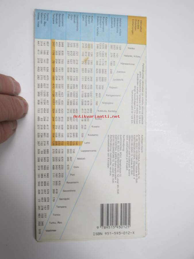 | Saatavilla | 1 kpl | | Julkaisuvuosi | 1988 | | Kunto | K3 | | Sidonta/painoasu | Pienpainate | | Kielet | Suomi, Ruotsi, Englanti, Saksa |
