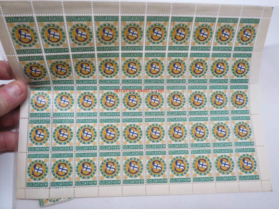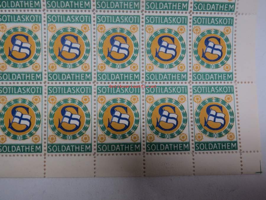 Suomen Sotilaskotiliitto20 x 26 cm, arkissa 50 merkkiä.