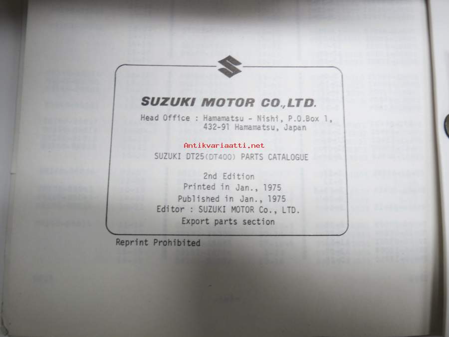 Suzuki Motor Co, Ltd, 197513 x 18 cm, tarkat mallimerkinnät kannessa.