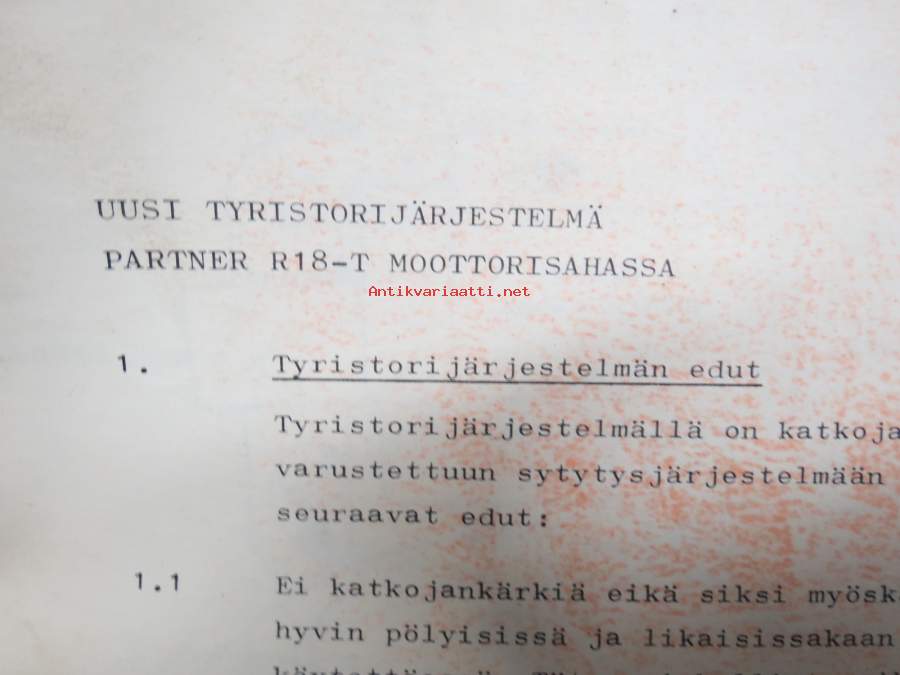 Partner R18T Uusi tyristorijärjestelmä -käyttöohje / selostus