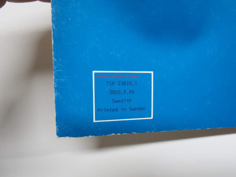 | Saatavilla | 1 kpl | | Julkaisuvuosi | 1986 | | Sivuja | 20 | | Kunto | K2 | | Sidonta/painoasu | Nidottu (pehmeäk.) | | Kielet | Ruotsi |