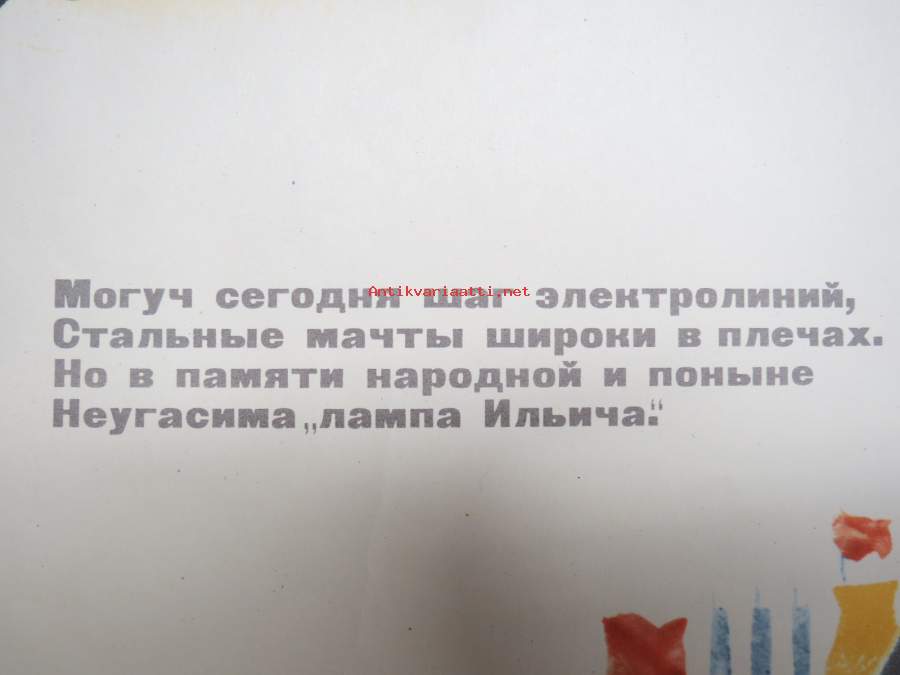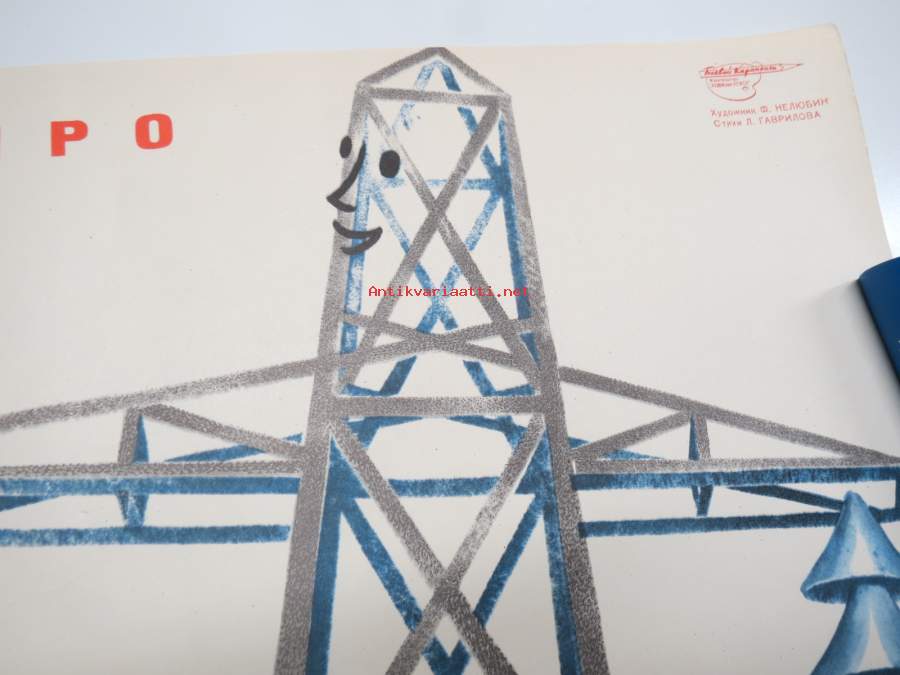 "Sähköistämisohjelma etetee" -neuvostoliittolainen propagandajuliste v. 1970