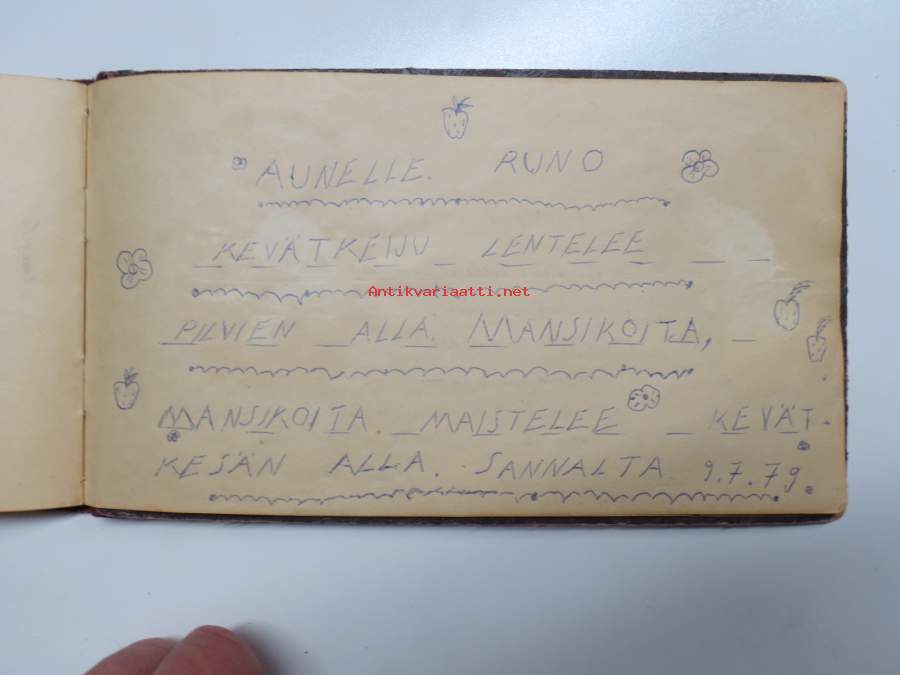 13 x 23 cm kirja, kannessa teksti "Poesie", yksi kirjoitelma vuodelta 1979 samalle henkilölle!