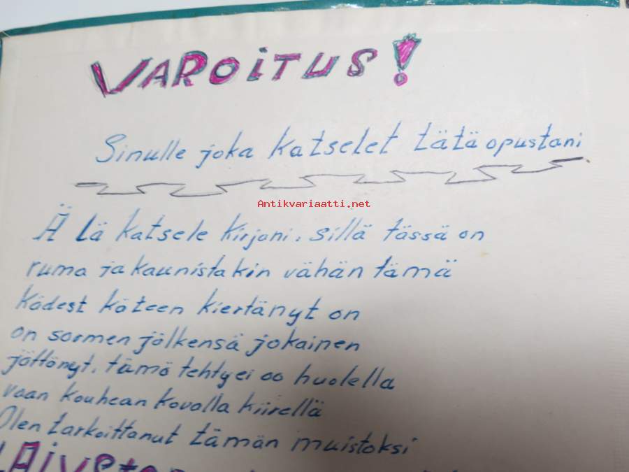 | Saatavilla | 1 kpl | | Julkaisuvuosi | 19 | | Kunto | K2 | | Sidonta/painoasu | Kuvitettu kovakantinen | | Kielet | Suomi |