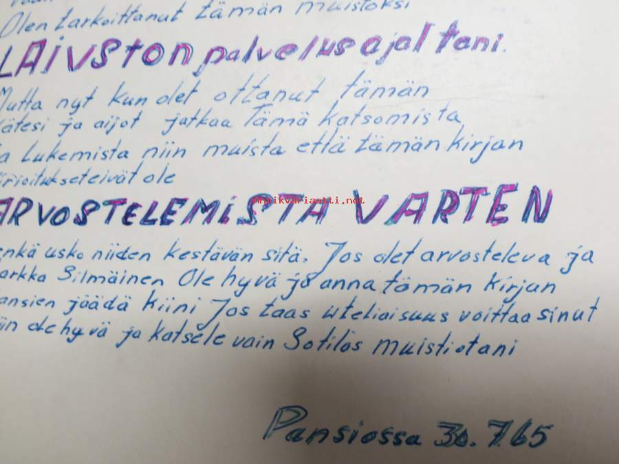 Sotilasmuistio, matruusi T.K. - Rio Del Pansio, TurLas -varusmiesaikaisia muistoja ja piirroksia ym. varten tarkoitettu kirja