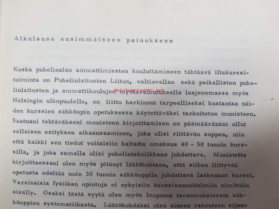 | Saatavilla | 1 kpl | | Julkaisuvuosi | 1964 | | Sivuja | 92 | | Painos | 1. | | Kunto | K2 | | Sidonta/painoasu | Nidottu (pehmeäk.) | | Kielet | Suomi |