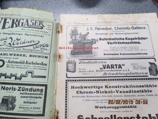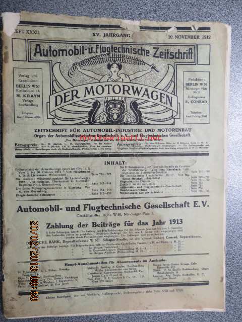 Automobil und Flugzeugtechnische Zeitschrift Der Motorwagen 20. Novembewr 1912 -varhainen saksalainen autolehti