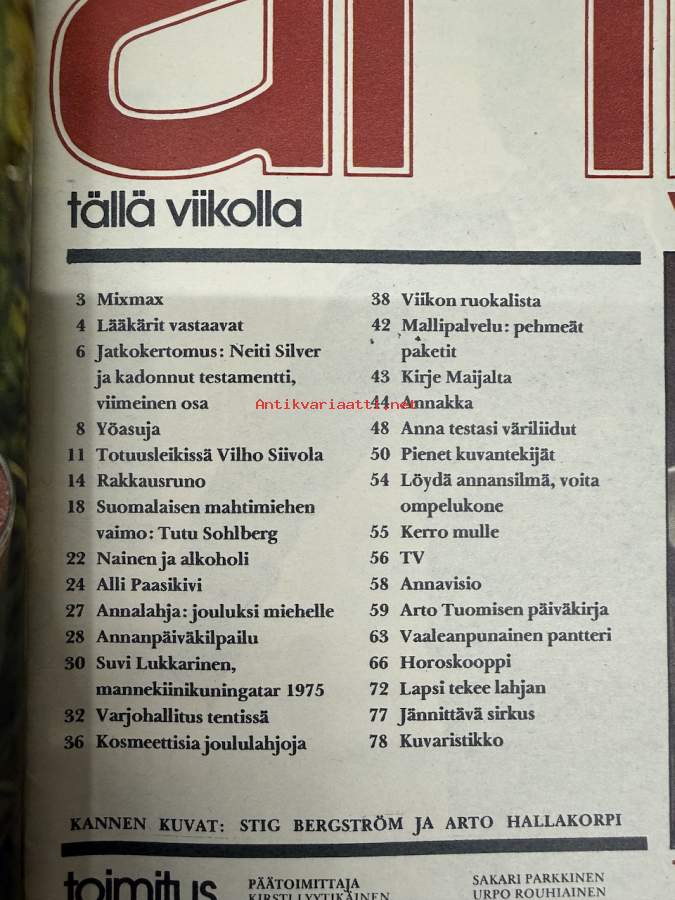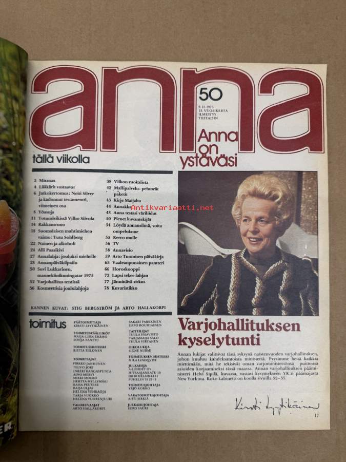 Anna 1975 nr 50, ilmestynyt 9.12.1975, Tuulikki (Tutu) Sohlberg, Suvi Lukkarinen, Arto Tuomisen viikko