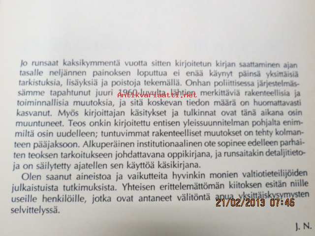 | Saatavilla | 1 kpl | | Julkaisuvuosi | 1980 | | Sivuja | 376 | | Painos | 5. uusittu painos | | Kunto | K3 | | Kansipaperit kuluneet | | Sidonta/painoasu | Sidottu (kansipaperit) | | ISBN | 951-0-10080-3 | | Kielet | Suomi |