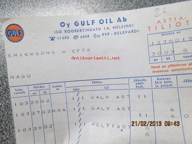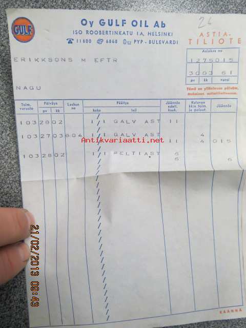 Oy Gulf Oil Ab -astiatiliote 30.3.1961