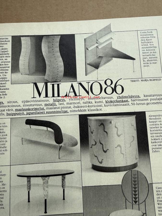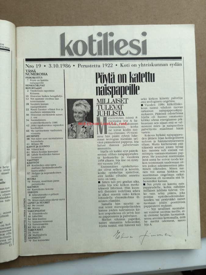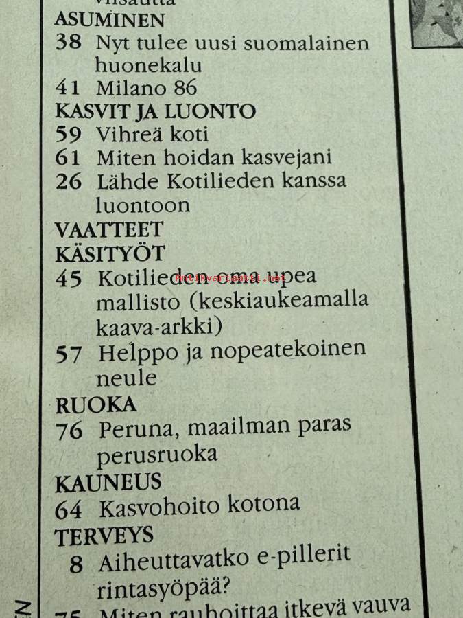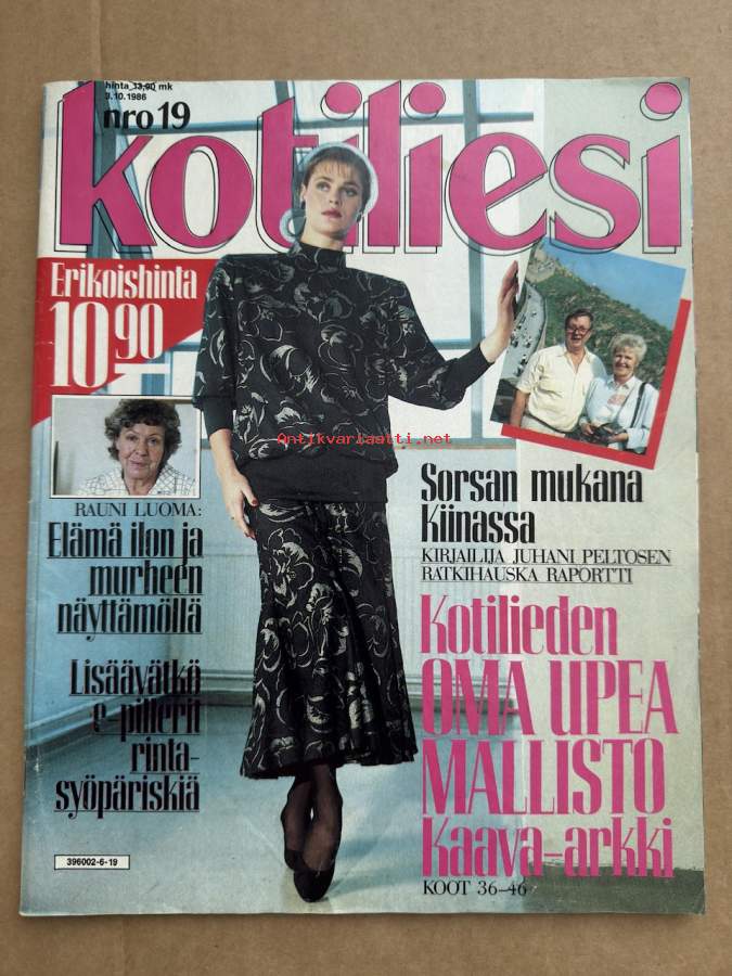 Kotiliesi 1986 nr 19 (3.10.1986), Rauni Luoma, Sorsan mukana Kiinassa, huonekalu, kaava-arkki, peruna