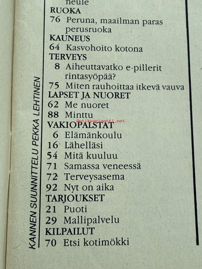 | Saatavilla | 1 kpl | | Julkaisuvuosi | 1986 | | Sivuja | 96 | | Kunto | K3 | | Sidonta/painoasu | Lehti | | ISBN | 396002-6-19 | | Kielet | Suomi |