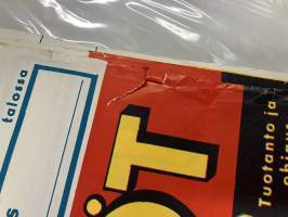 44 x 68 cm elokuvajuliste. Suomen Filmiteollisuuden elokuva Autotytöt, pääosissa Maija Karhi, Ritva Vepsä, Helge Herala, Leo Jokela Vuokko Docktare, Sinikka Hannula, Helge Herala, Sakari Jurkka, Ville-Veikko Salminen, Kullervo Kalske, Kauko Kokkkonen, Toivo Mäkelä, Heimo Lepistö. "Elokuva maanteittemme ongelmalapsista" "Rahalla saa - Autolla pääsee".