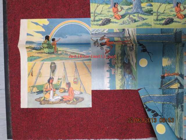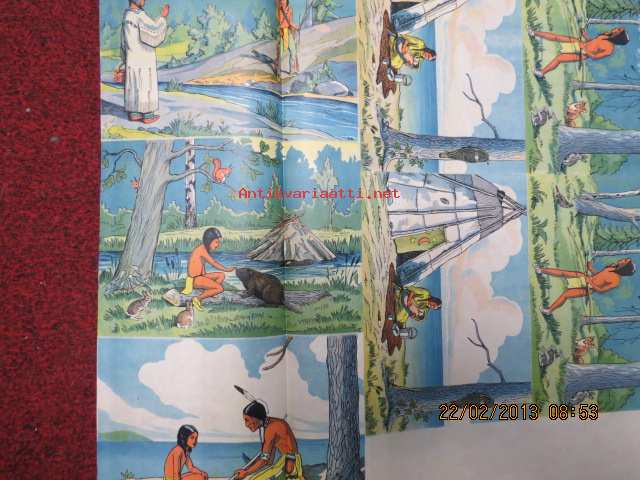 Intiaaniaiheisen kirjan kuvasivuja painoarkkina