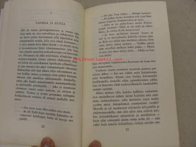 | Saatavilla | 1 kpl | | Julkaisuvuosi | 1970 | | Sivuja | 160 | | Painos | 1. | | Kunto | K3 | | Sidonta/painoasu | Nidottu (pehmeäk.) | | Kielet | Suomi |