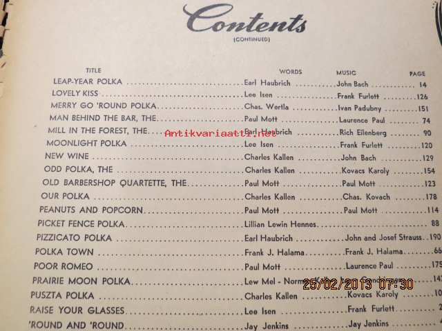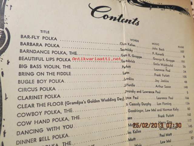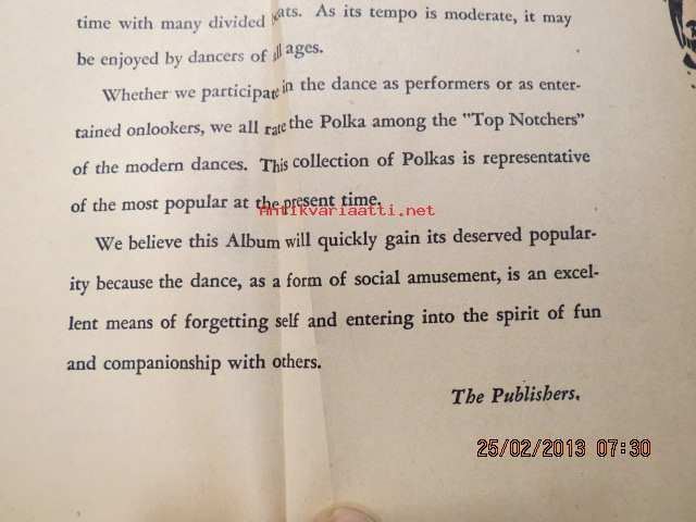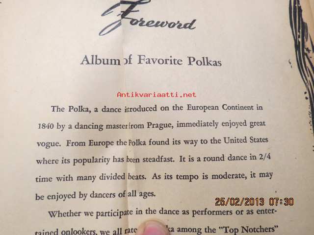 Album of Favourite Polkas (Cole Edition) -nuottikirja, polkkanuotteja