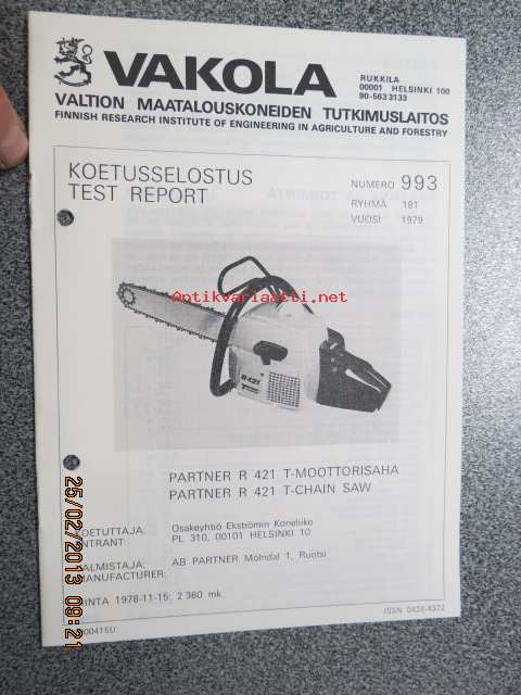 Partner R 421 T moottorisaha Vakola koetusselostus 1979