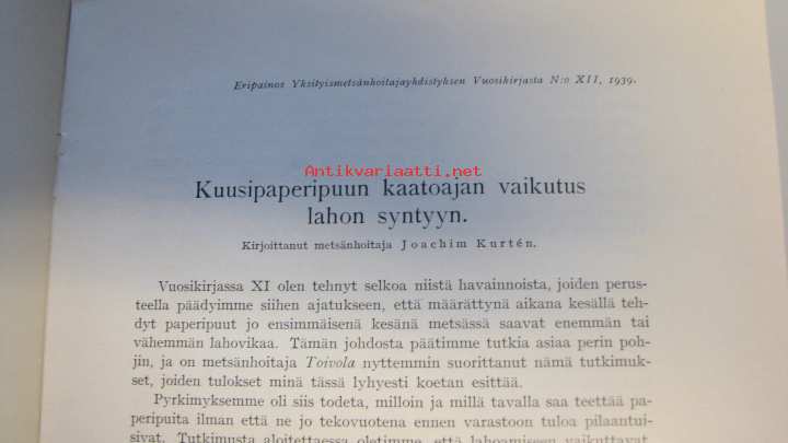 Kurten Joachim, Yksityismetsänhoitajayhdistys, 1939