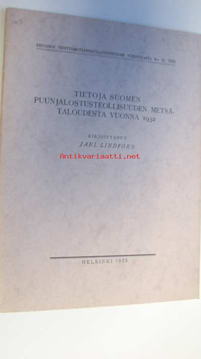 | Saatavilla | 1 kpl | | Julkaisuvuosi | 1933 | | Sivuja | 36 | | Kunto | K3 | | Sidonta/painoasu | Nidottu (pehmeäk.) | | Kielet | Suomi |