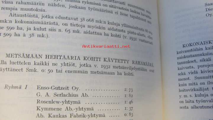 Tietoja Suomen puunjalostusteollisuuden metsätaloudesta vuonna 1932