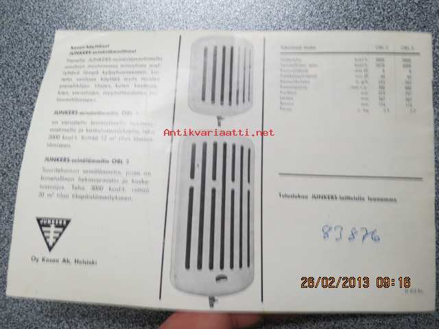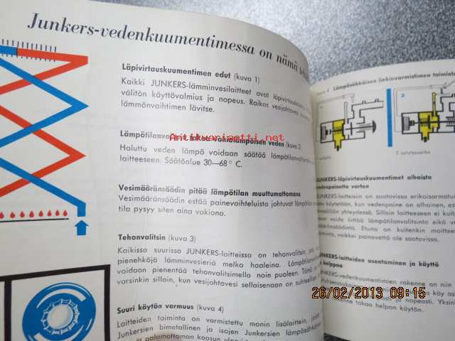 Lämmin vesi Junkersilla (Kosan-kaasua käyttäen), vedenlämmitin -myyntiesite