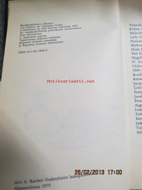 | Saatavilla | 1 kpl | | Julkaisuvuosi | 1979 | | Sivuja | 246 | | Painos | 2 | | Kunto | K4 | | hyvä siisti, ei ed. omist. nimeä | | Sidonta/painoasu | Kuvitettu kovakantinen | | ISBN | 951-231329-4 | | Kielet | Suomi |