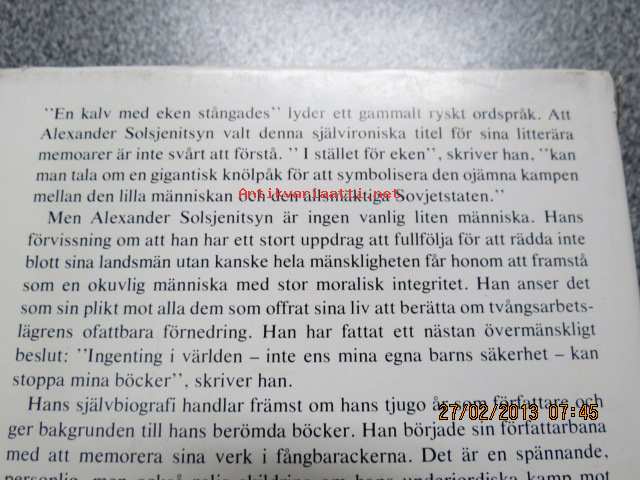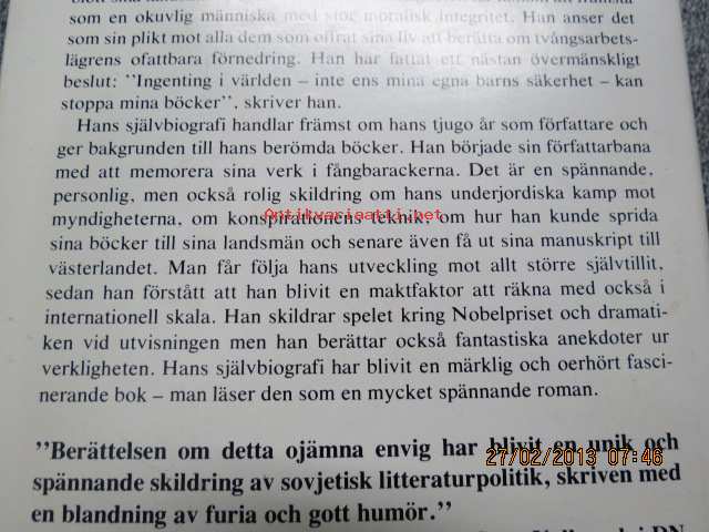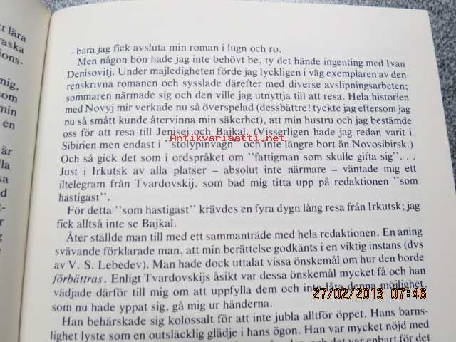 Aleksander Solsjenitsyn (Solzenitsyn), Wahlström & Widstrand, 197514 x 21 cm.